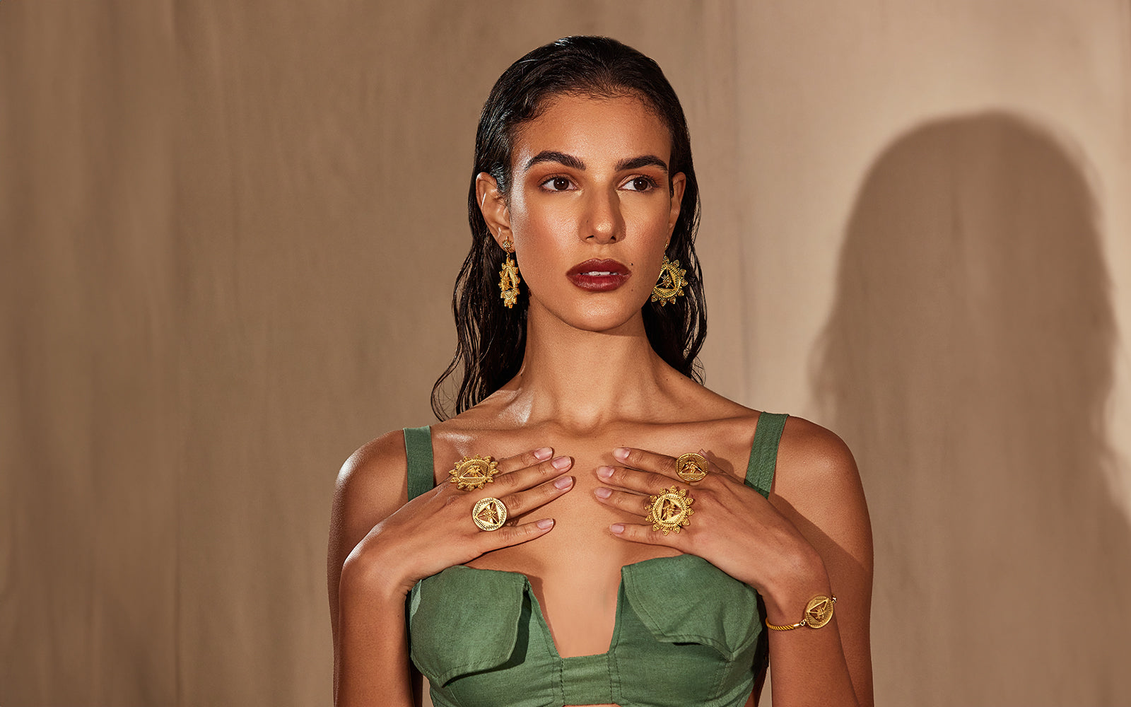 Guided by the Five elements of nature, AlmaFive celebrates the way people celebrate and adorn themselves in jewelry. An ethos to explore another kind of wanderer - with gold plated adornments.